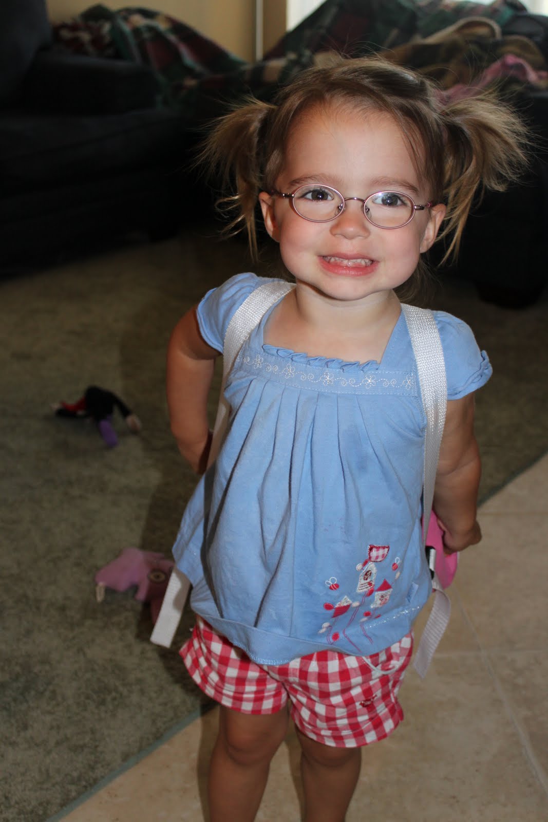 almost. She has been a bit dramatic lately because she's getting four molars. I hate teeth! They turn Bailey into a tiny monster. She was not sad to leave us, she was just sad that she couldn't sit with her sippy and watch Gabba before she left.